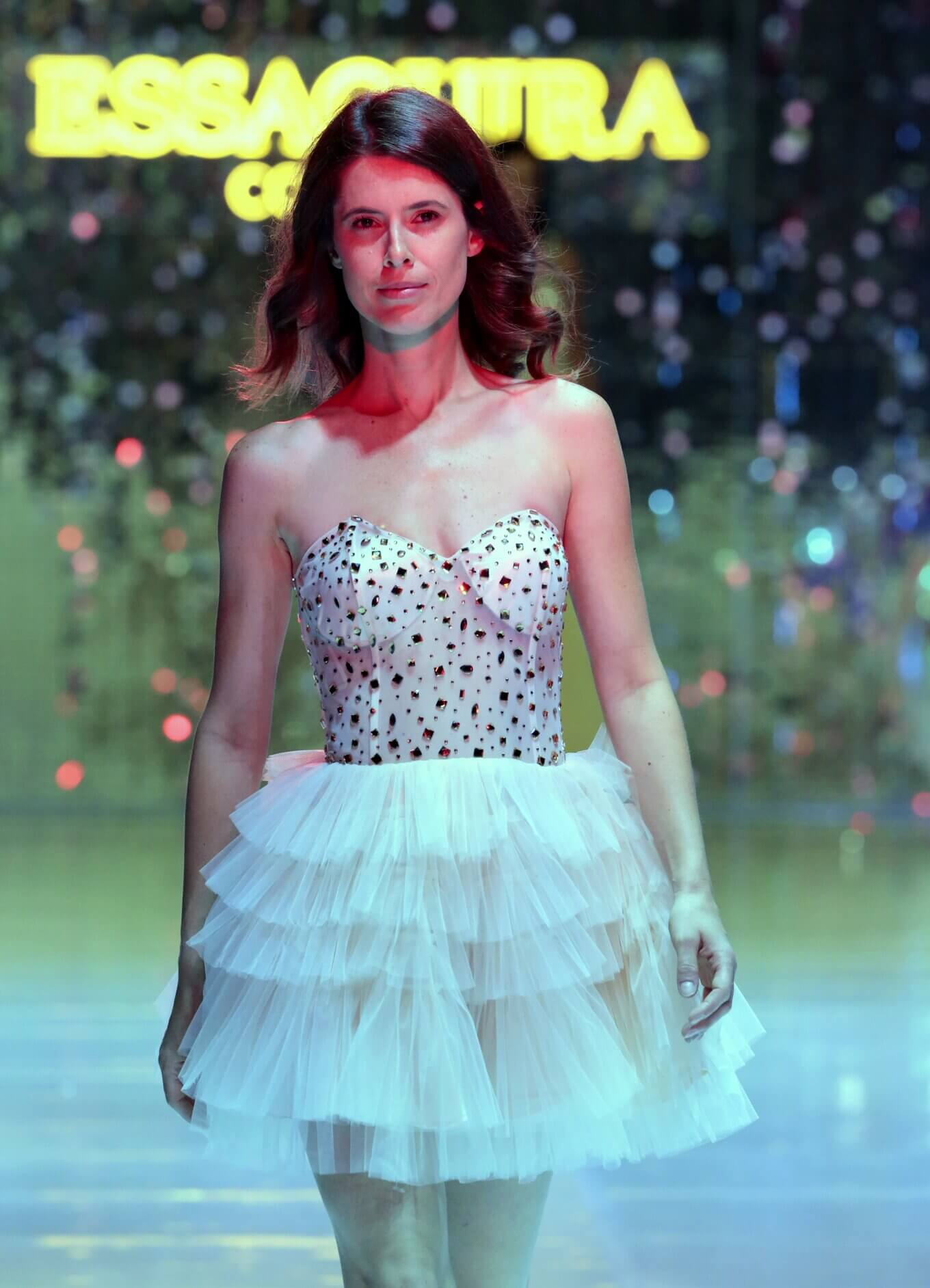 L’abito Febe è l’espressione perfetta di una femminilità romantica e luminosa, ideale per chi desidera un look raffinato ma dal carattere giocoso e couture. Il corpetto a cuore senza spalline, impreziosito da applicazioni gioiello scintillanti, valorizza il décolleté con eleganza e delicatezza.