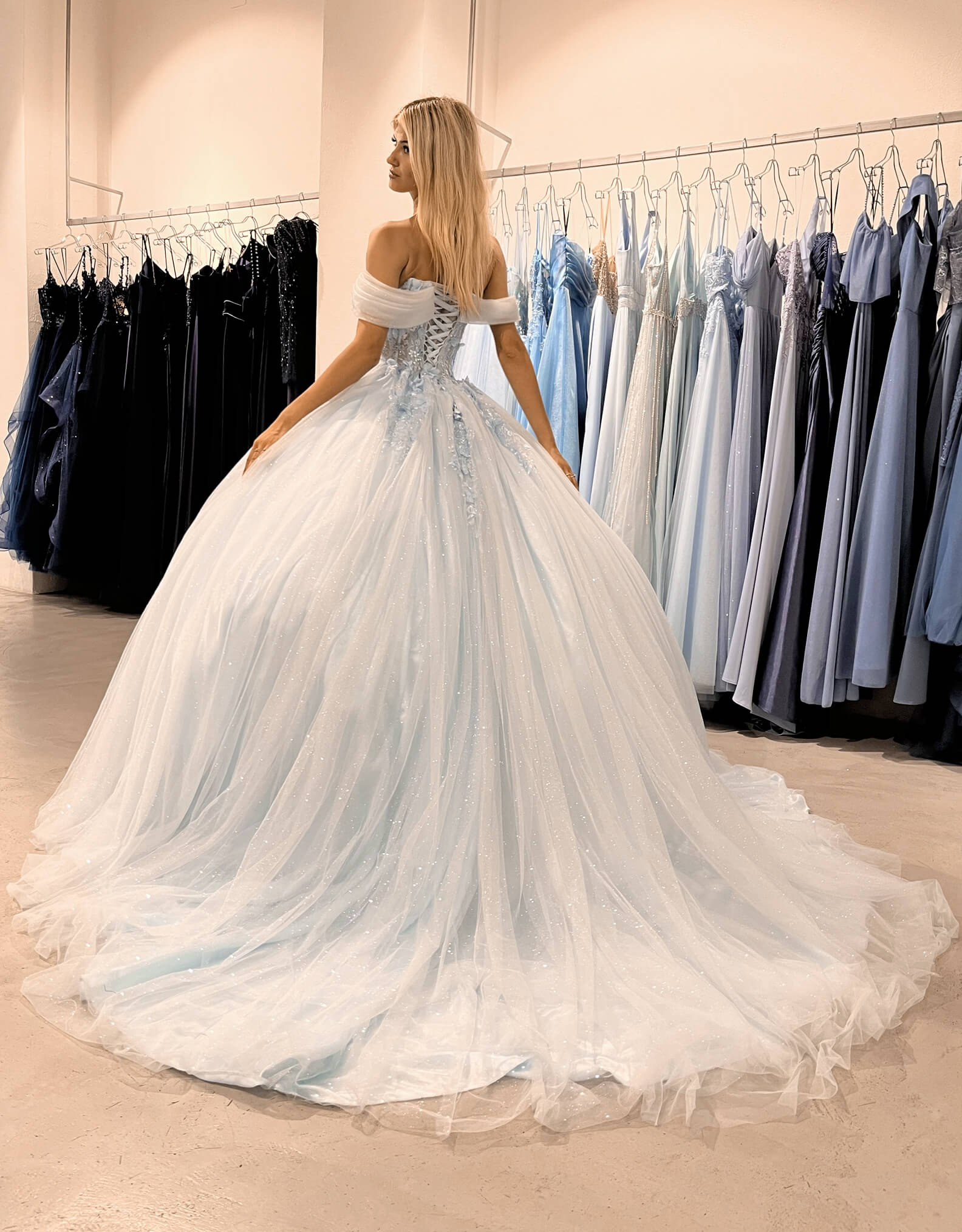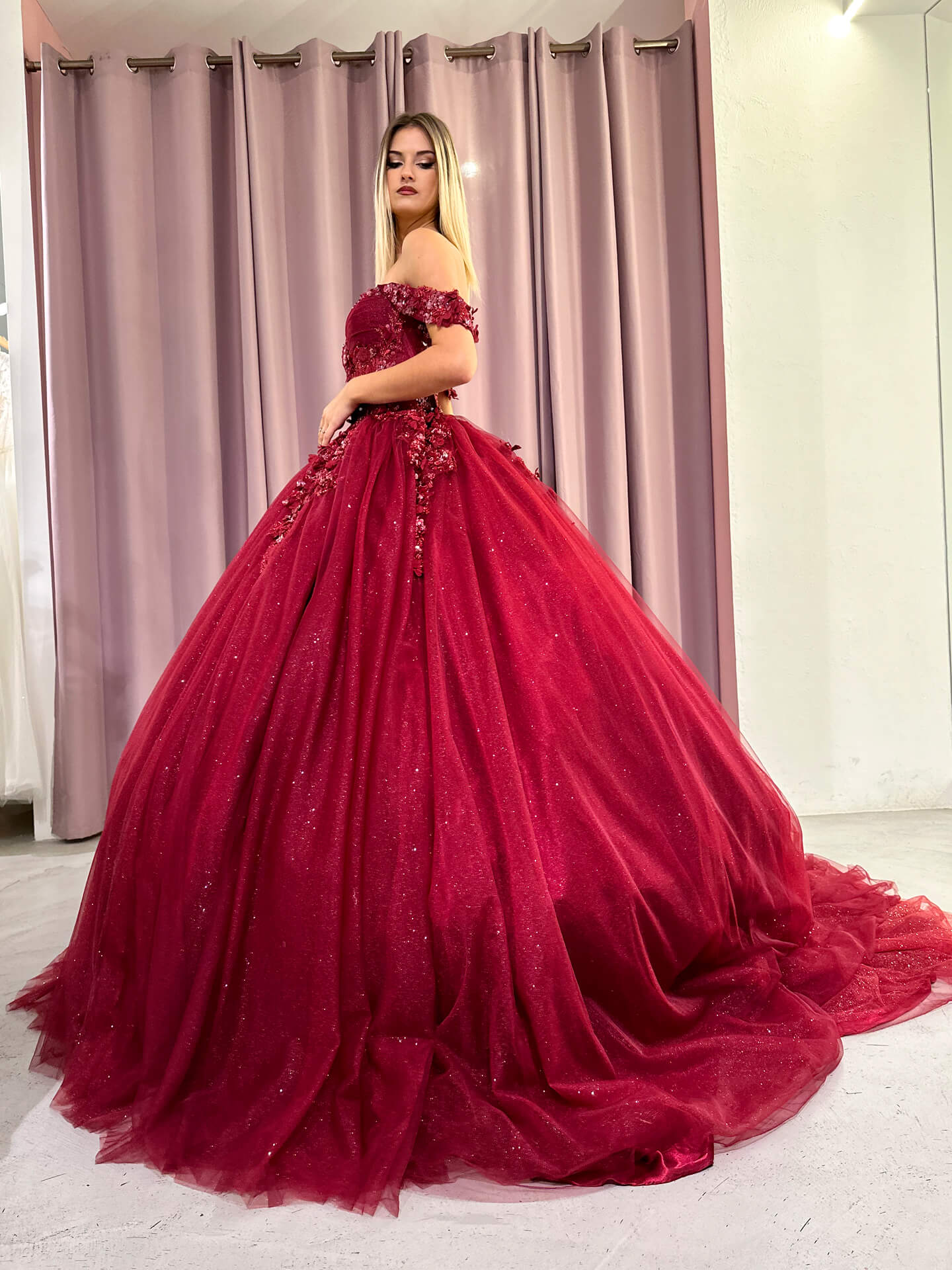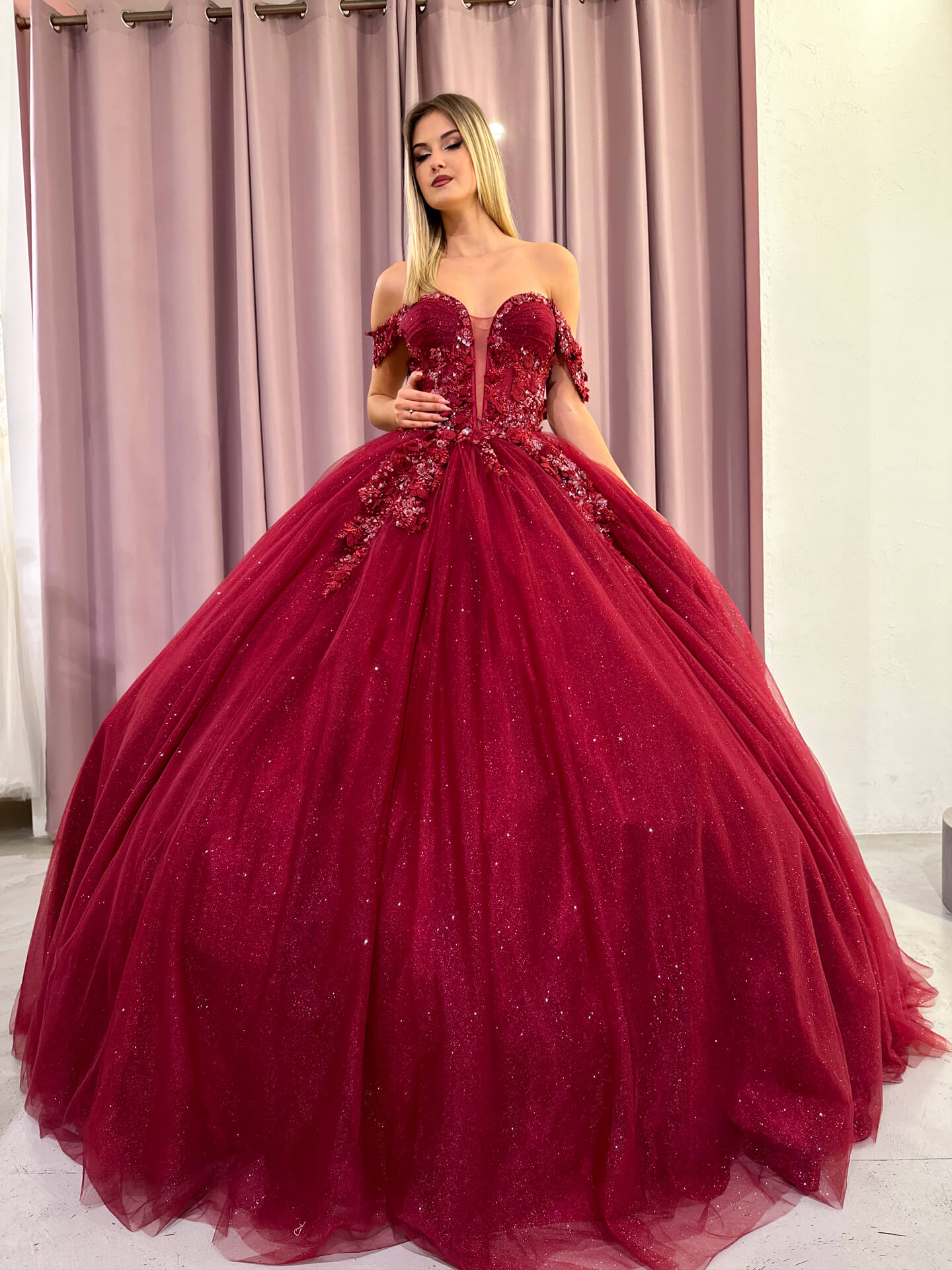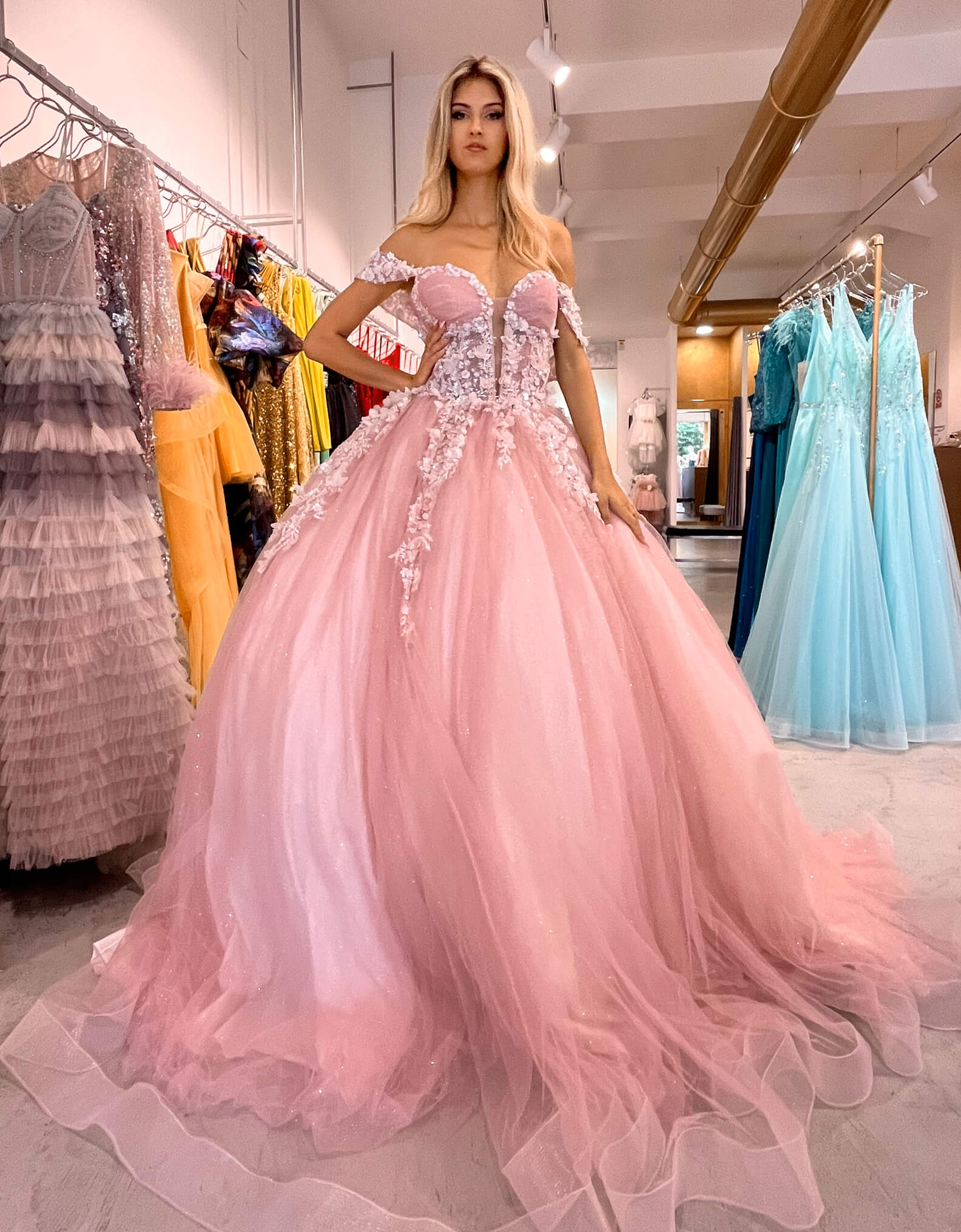 L’abito Evangeline è la scelta ideale per chi cerca una fusione perfetta tra dolcezza e classe. Realizzato in tulle e pizzo, questo abito da sogno ti farà sentire una principessa in ogni occasione speciale. La sua forma voluminosa e fluida, insieme alle delicate balze, dona una sensazione di leggerezza e movimento.